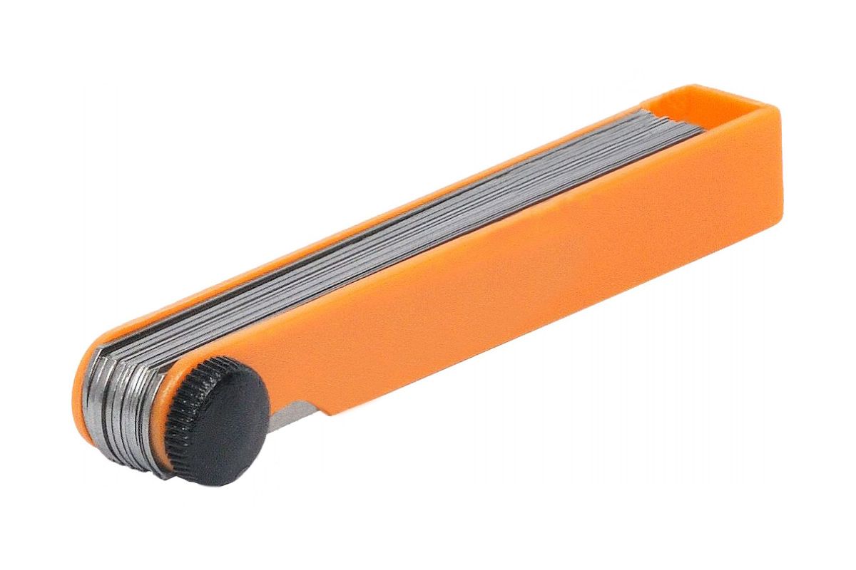 Плоские щупы служат для измерения зазоров. В комплекте 20 высокопрочных пластин с маркировкой (обозначение размера нанесено методом лазерной гравировки). Набор складывается в компактный веер.