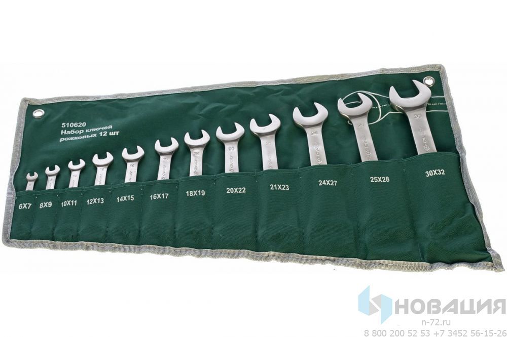 В набор входят сумка-чехол и 12 рожковых ключей: