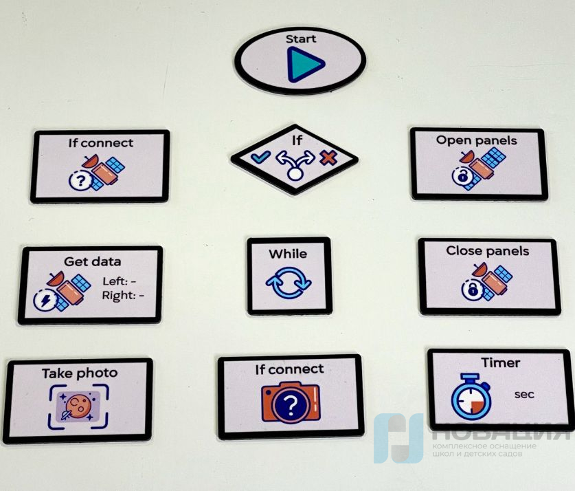 Кроме того, конструктору сопутствует полный пакет учебных пособий и уникальный набор магнитов, обеспечивающих ясное и простое восприятие учебного материала. Ученики смогут самостоятельно разрабатывать программы управления устройством непосредственно на магнитной доске, минуя необходимость использования компьютеров.