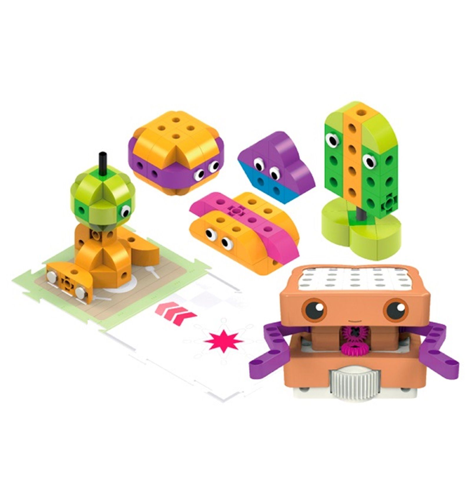 Платформа программируется интуитивно, без использования смартфонов или компьютеров. Роботы перемещаются по двухстороннему полю, сложенному из 19-ти карточек, и двигают заданные объекты.