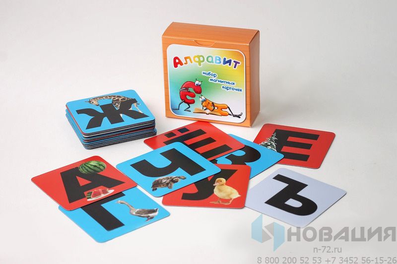 В комплекте: 33 магнитные карточки с буквами русского алфавита.