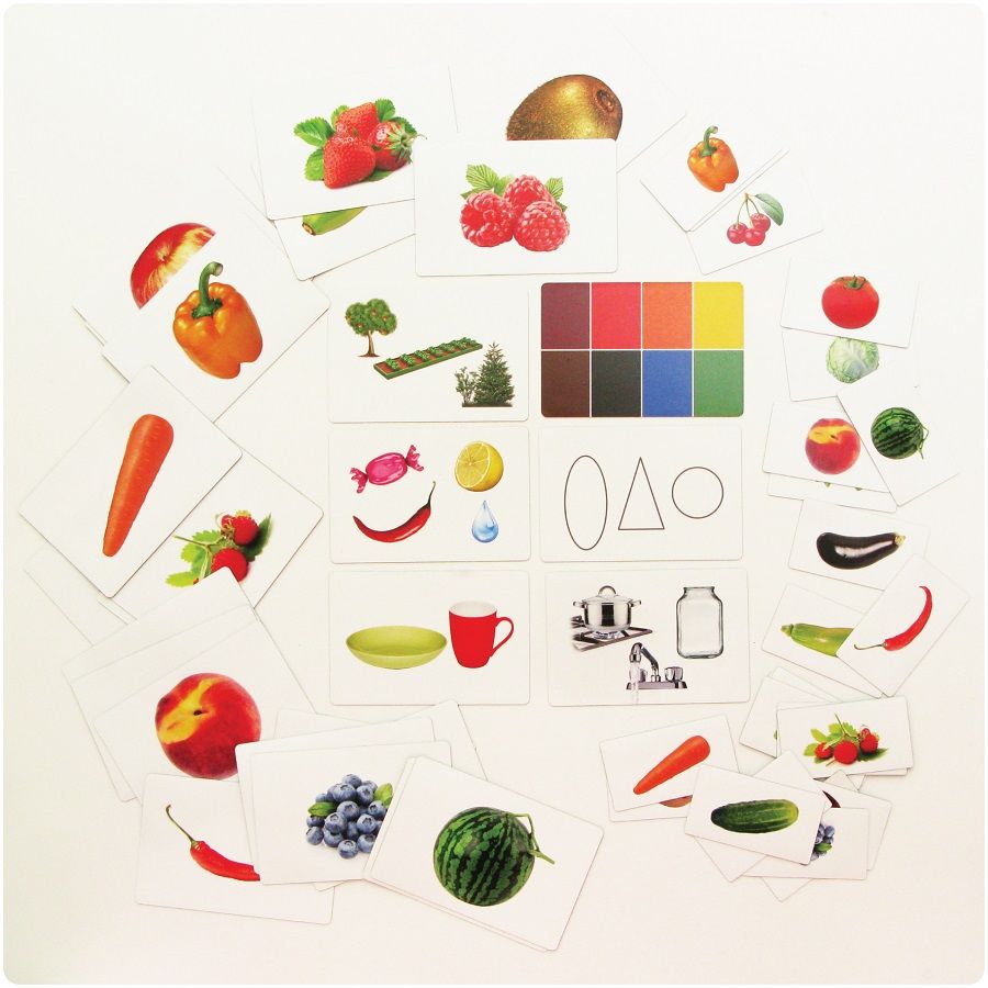 - 23 карточки с изображениями плодов для использования в качестве раздаточного материала, размеры - 90х50 мм;