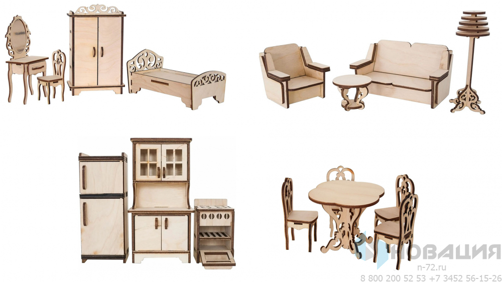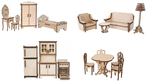 Набор мебели для кукол, фанера (для кукол до 12 см)