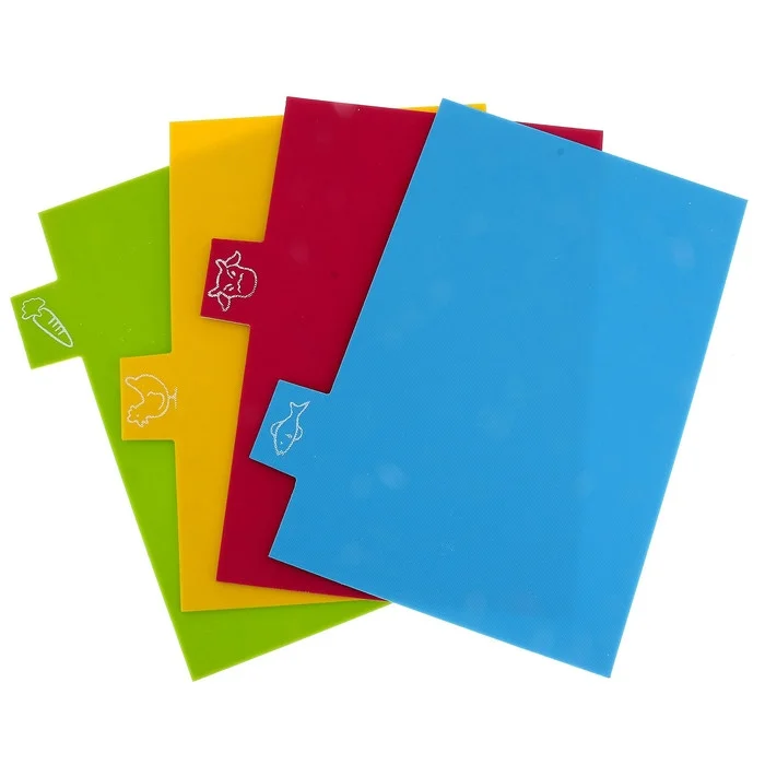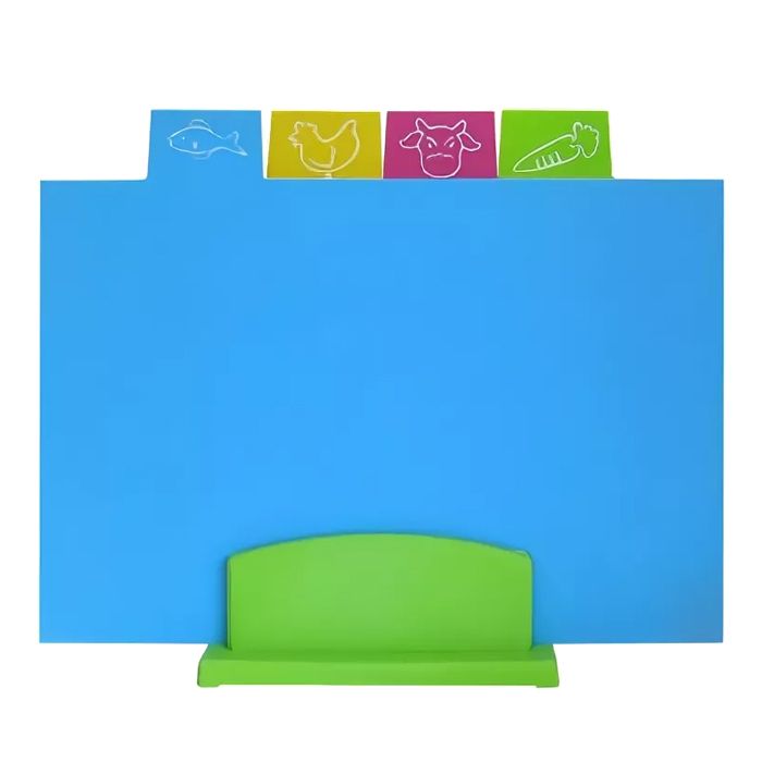 Набор из 4-х разноцветных досок выделяется нескользящими поверхностями. Нарезка продуктов станет легкой и безопасной. Гигиеничная поверхность доски не впитывает запах пищи, не затупляет нож.