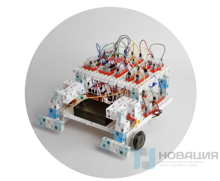 С набором ребенок собирает электрические схемы, изучая их работу и создавая разные модели.