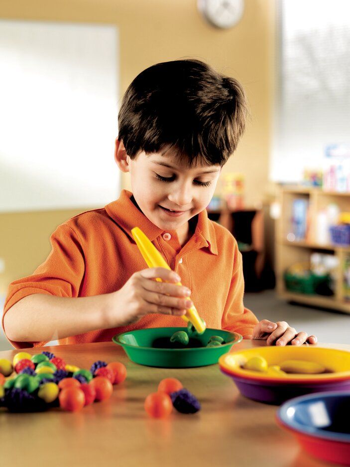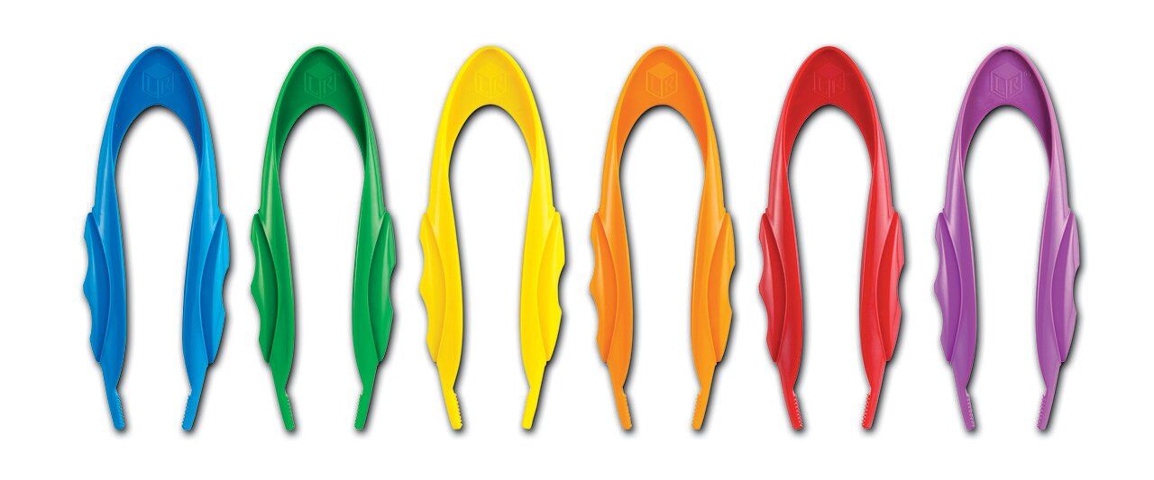В наборе 12 разноцветных пинцетов, форма которых адаптирована для детской руки. Способствует развитию мелкой моторики и координации.