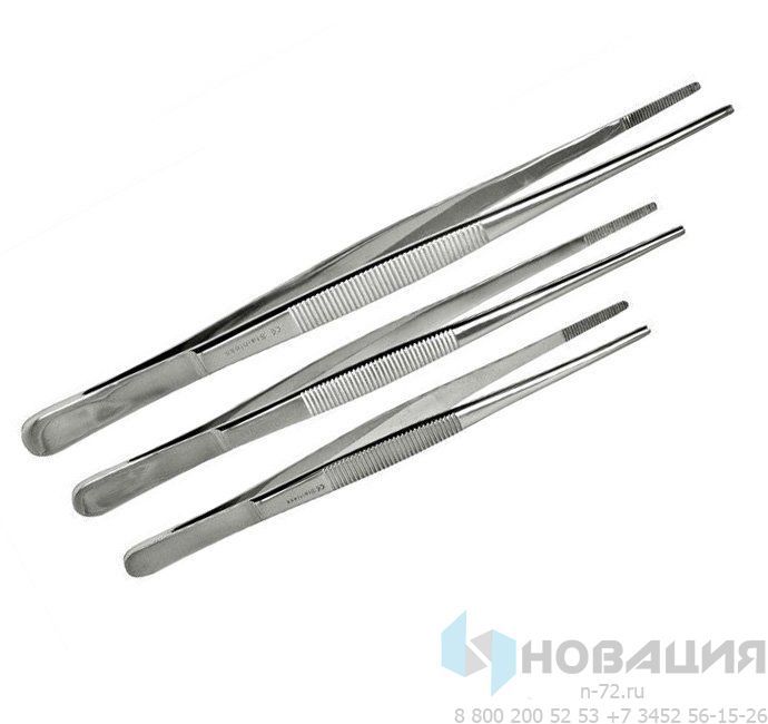 В комплекте 6 пинцетов: 3 хирургических, 3 анатомических.