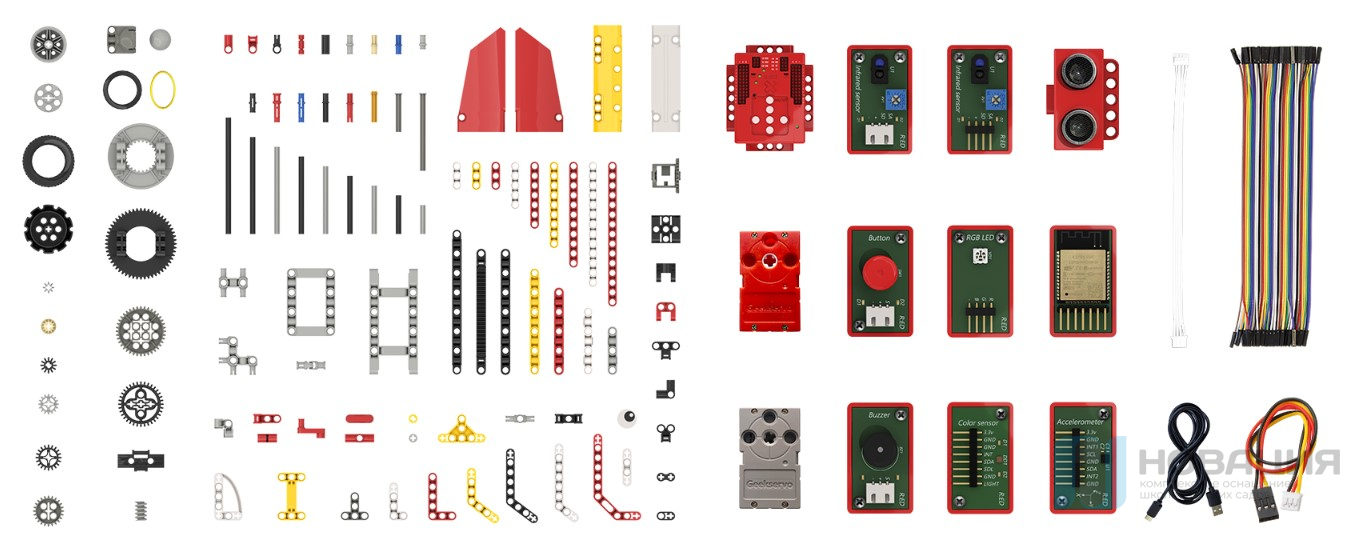 Имеет большое количество соединительных деталей, зарядное устройство и аккумуляторные батареи, что делает процесс программирования еще более углубленным и познавательным.