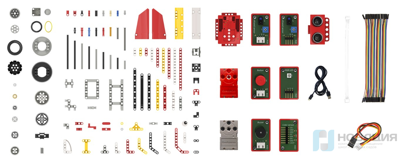 Набор состоит из разнообразных и необходимых деталей для изучения робототехники. Набор подходит для соревновательной деятельности и для участия в различных проектах, таких как - «Точка роста», «Детский технопарк «Кванториум», «Новые места в общеобразовательных организациях», «Центр цифрового образования детей «IT-куб» и другие.