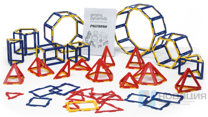 - большой (80 равносторонних малых треугольников, 40 прямоугольных треугольников, 60 равнобедренных треугольников, 24 равносторонних больших треугольников, 30 квадратов, 20 шестиугольников, 12 пятиугольников, 2 угломера).