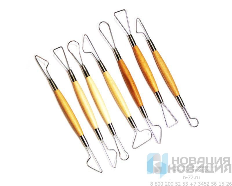 2-сторонние стеки с петлями применяются в гончарных мастерских или кабинетах технологии. Проволочные инструменты с эргономичными деревянными рукоятками помогают моделировать изделия из пластичных масс.