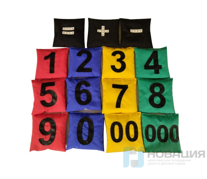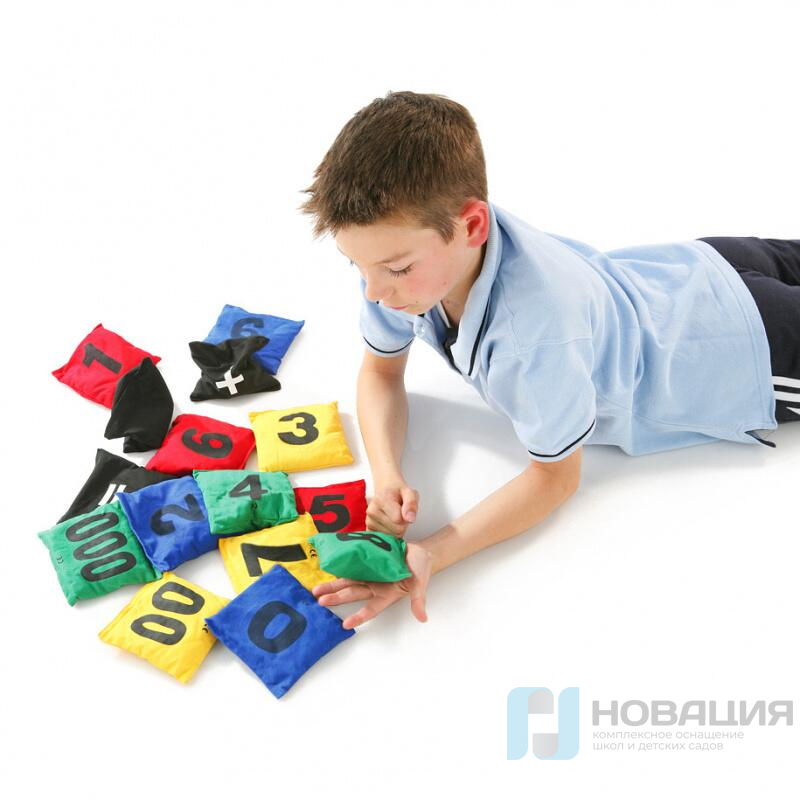 Каждый мешочек пронумерован и наполнен специальными гранулами из пластика. Рельефные изображения цифр и 4 цвета мешков помогают запоминать числа, сортировать предметы. Комплект подходит для коррекционных занятий.