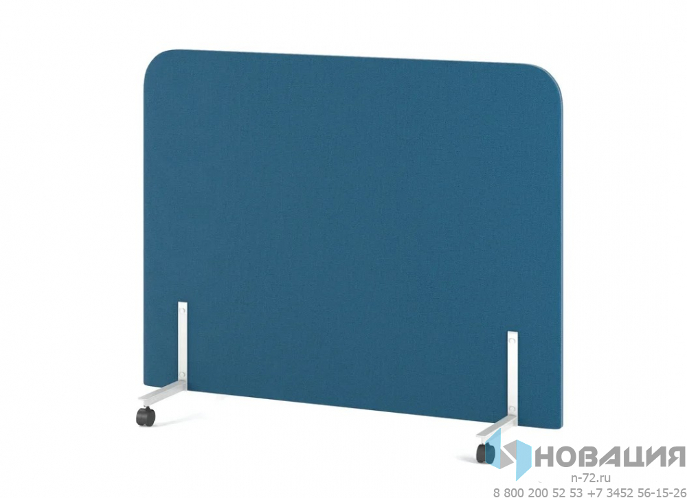 Перегородка с 4-мя колесами на опорах-уголках разграничивает пространство. Экокожа поглощает шум. Верхние углы ширмы закруглены. Элемент сочетается с мебелью ToForm.