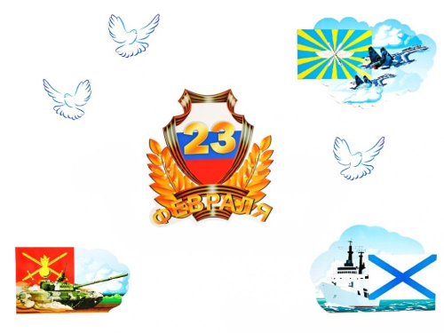 - объемная эмблема с флагом Российской Федерации и надписью 23 февраля, размеры (ШхВ) - 1200х1300 мм - 1 шт.;