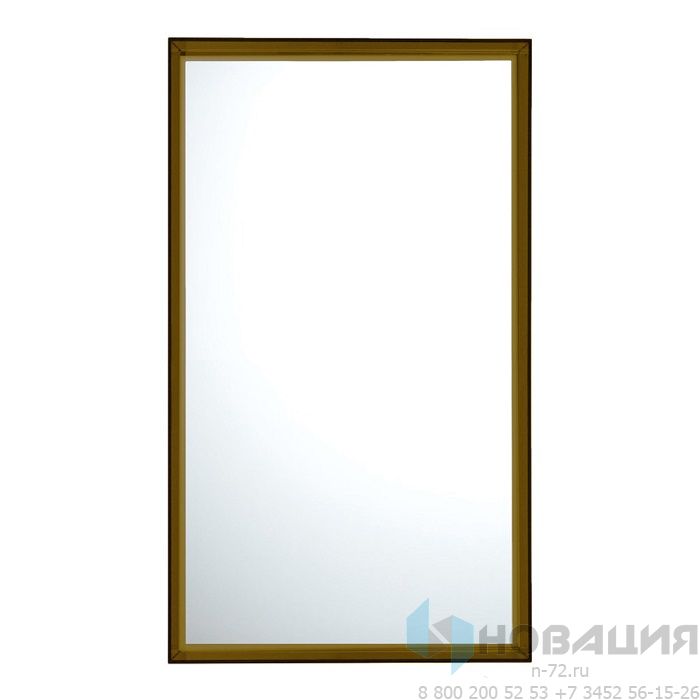 Настенное зеркало прямоугольной формы обрамлено пластиковым багетом нейтральных цветов и фактур.