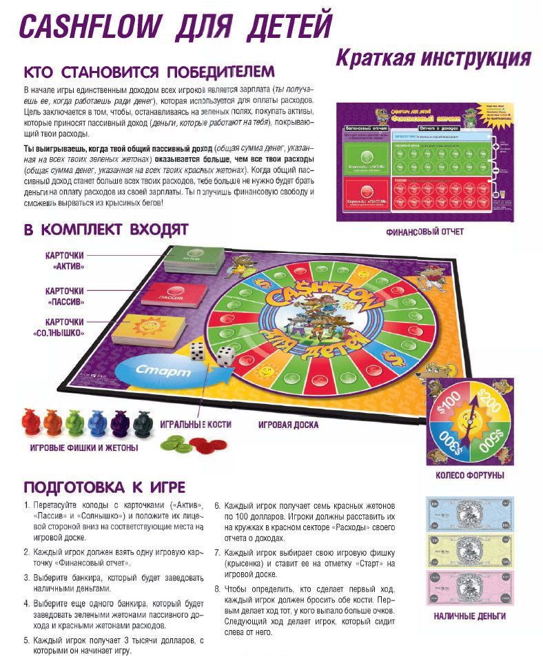 Экономическая игра для 1-4 участников знакомит с понятием капитала. Дети строят финансовые планы, задумываются об инвестициях и принципах распределения денежного потока.