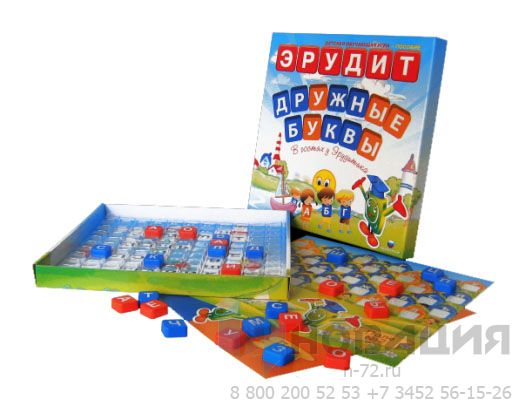 Настольная игра "Эрудит. Дружные буквы". Размеры: 38х37х4 см. В комплекте: