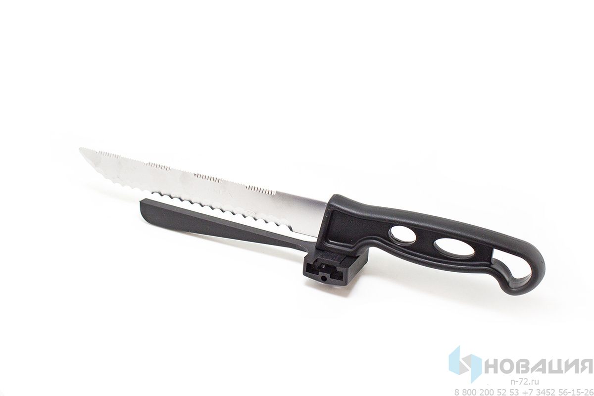 Нож с ограничителем применяется для ровной нарезки продуктов (в том числе, замороженных). 2-сторонняя заточка позволяет разделывать птицу и рыбу. Для основных продуктов используется лезвие с волнообразным краем. Ломтики получаются одинаковыми и аккуратными.