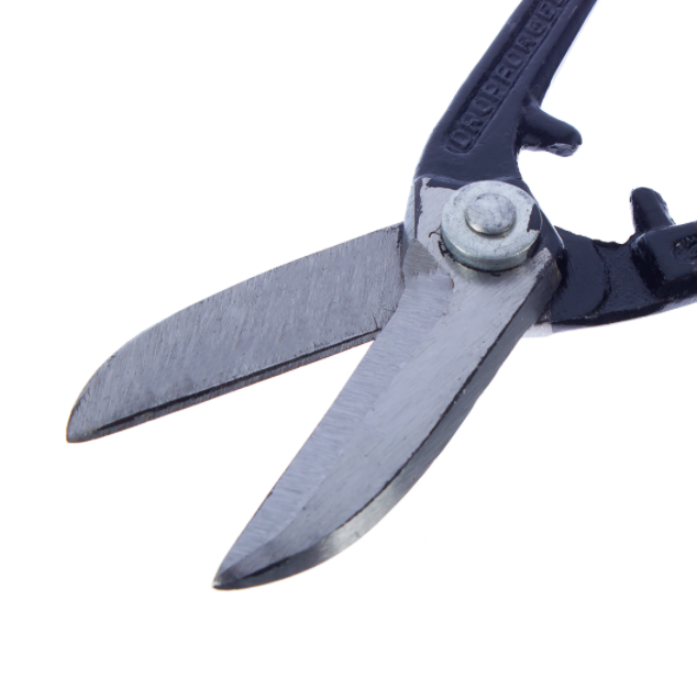 Ножницы подходят для прямого реза по листам цветного и черного металла (толщина до 0,5 мм), металлической сетке, пластику, коже. Кромки инструмента закруглены. Есть фиксатор для хранения в сложенном состоянии.