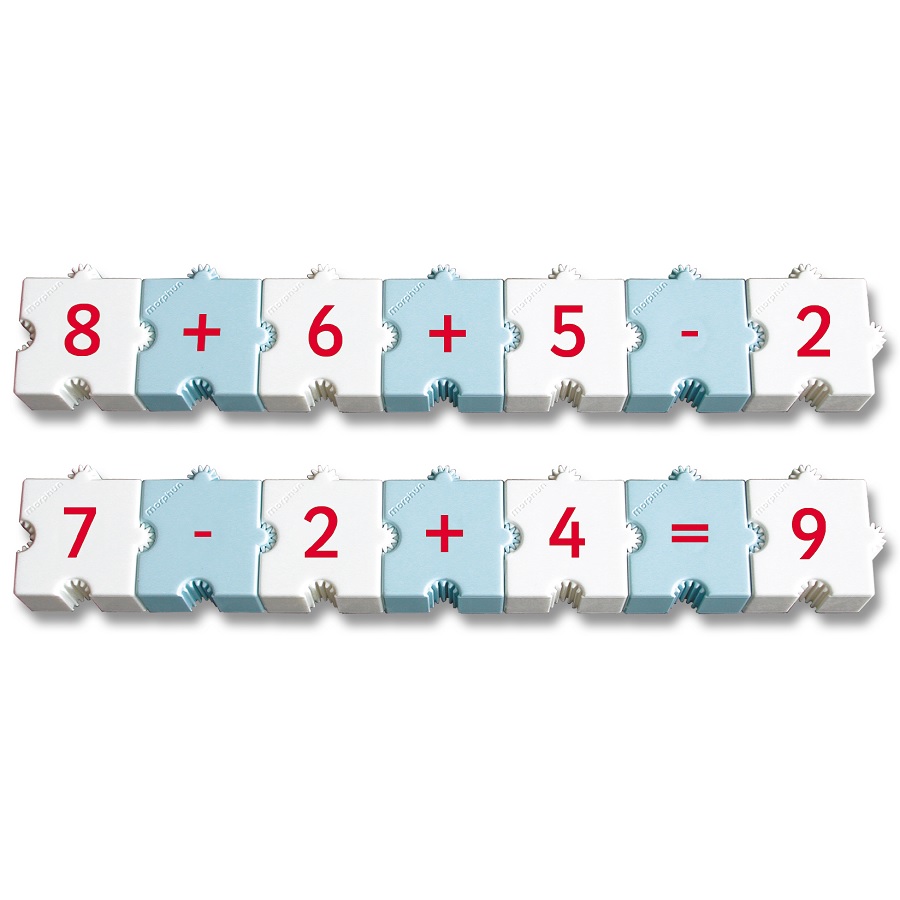 - 213 квадратных деталей с изображениями математических знаков и цифр,
