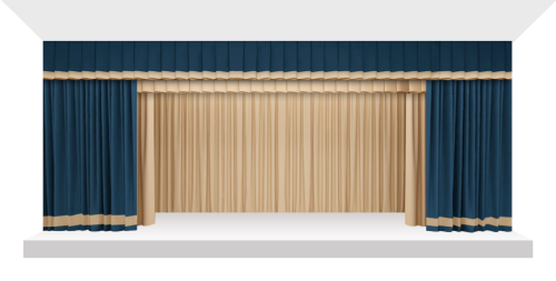 Центральный антрактно-раздвижной занавес состоит из двух синхронно движущихся частей, открывающих и закрывающих сцену. Верхний декоративный элемент — арлекин — расположен над сценой, украшает её и прячет технические конструкции. Кулисы, размещенные по бокам, визуально отделяют закулисье, скрывая декорации и исполнителей. Над кулисами находится падуга, маскирующая верхнее оборудование сцены. Завершают конструкцию задники, создающие общий художественный фон и способные скрыть вспомогательные конструкции.