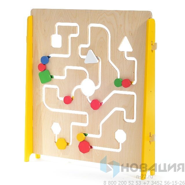 Отшлифованная панель на боковых опорах представляет собой поле с лабиринтом. Элементы разных форм и цветов можно передвигать по желобам, сортировать. Кистевой тренажер подходит детям с ОВЗ.
