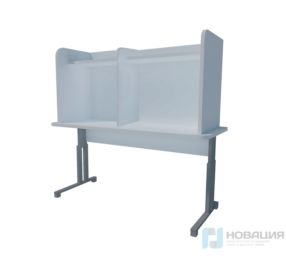 Высота парты регулируется. Основание выполнено из металлокаркаса. Столешница размером 1200х500х16 мм размещается при помощи скрытого крепления.