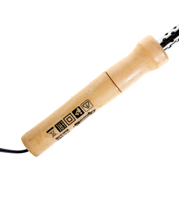 Электрический паяльник нагревается за 8 минут. Максимальная температура составляет 400°C. Состояние паяльного стержня непрерывно контролируется. Ручка из дерева покрыта термостойким лаком, поэтому не скользит.