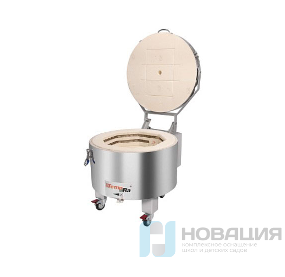 Печь с регулятором температуры ТП707 используется в гончарных мастерских. Устройство применяется для обжига керамических изделий. Конструкция с вертикальной загрузкой оснащается вентиляционным отверстием, через которое отводится влага. Спираль устанавливается в пазы между огнеупорными кирпичами защиты от механических повреждений. Печка дополняется поворотными и фиксированными колесами.