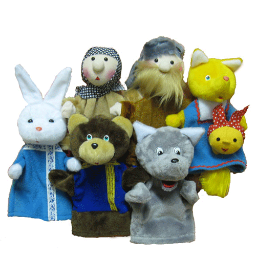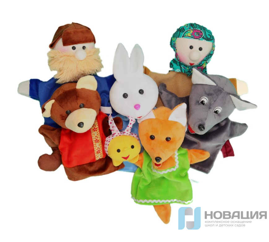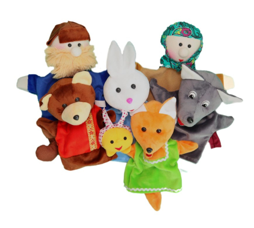 Цена на сайте указана за кукольный театр "Колобок" из 7 персонажей (Старик, Старуха, Заяц, Медведь, Волк, Лиса, Колобок).
