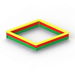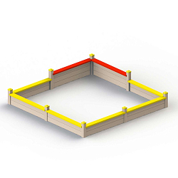 Песочница включает в себя: бортики, столбы, боковые и угловые стенки, заднюю стенку, столик, скамейки, крышу, декоративные элементы (аппликации в виде якорей), усиливающий элемент (деталь в форме паруса).