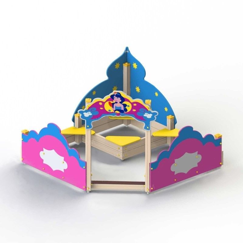 Огороженная площадка включает в себя: входную арку, песочницу, боковые панели.