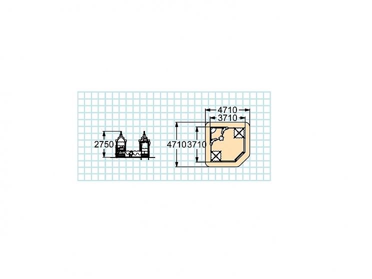 Размер: 3710х3710х2750 мм; высота площадок 300 мм.