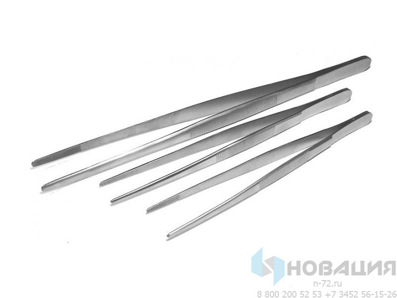 Ширина пинцетов варьируется, рабочая часть для пинцета длиной 200 мм — 2,5 мм шириной).