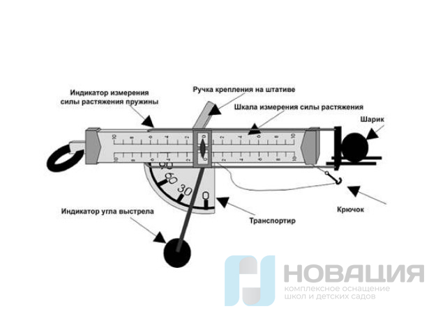 С помощью пружины прибора можно демонстрировать взаимодействие тел, потенциальную энергию пружины, а также движение тела, брошенного горизонтально, под углом к горизонту и вертикально вверх.