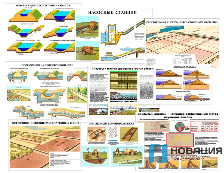 Плакаты предназначены для информирования о конструкциях ирригационных систем, методах орошения и мерах по защите почвы от эрозии.