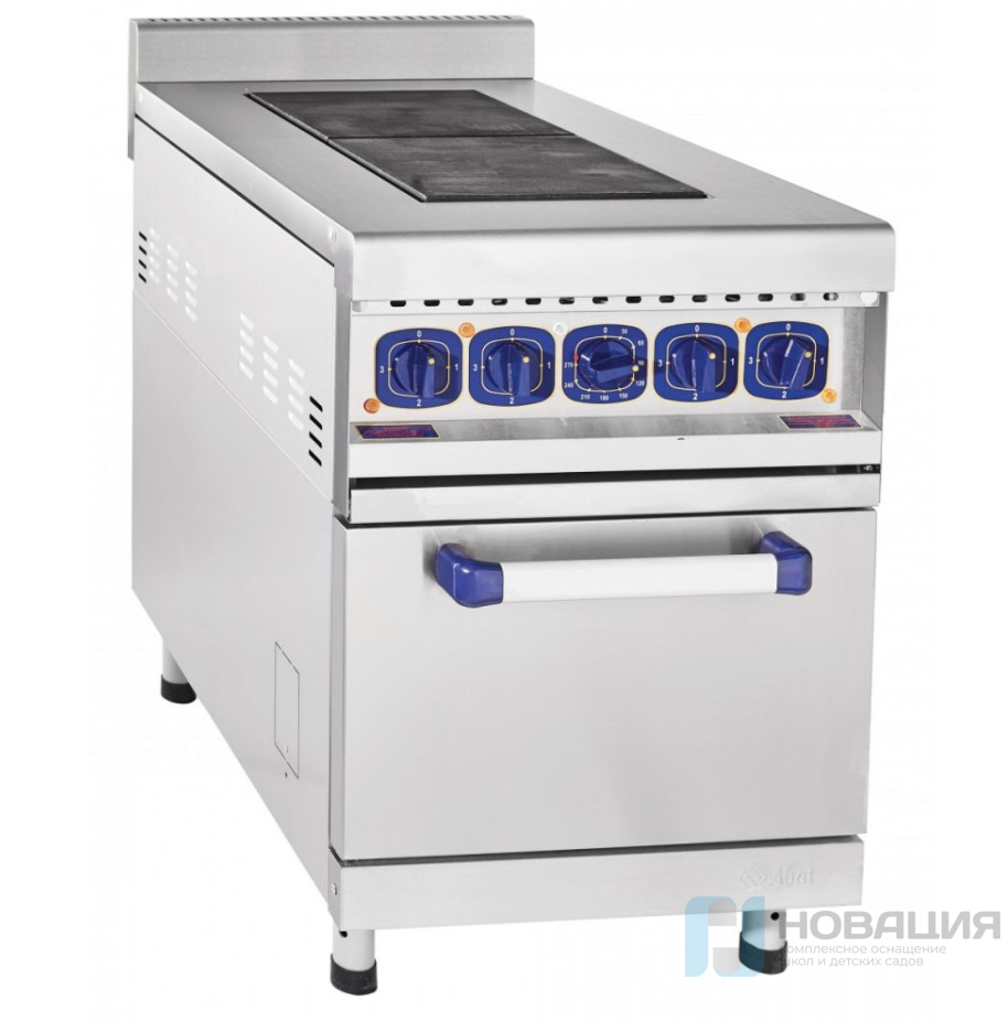 Чугунные конфорки разогреваются до максимальной температуры за 25 минут, а жарочный шкаф-за 30 минут. Плита оснащена переключателями с плавной регулировкой мощности. Духовка имеет направляющие для гастроемкостей стандарта GN 1/1, а также раздельную регулировку мощности верхних и нижних ТЭНов. Встроенный терморегулятор предохраняет духовку от перегрева.