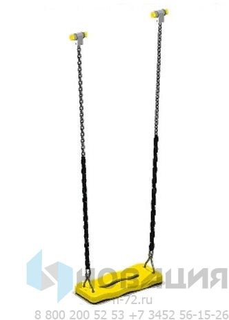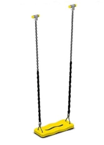 К гибкому подвесу из оцинкованной цепи прикрепляется 4-угольное сиденье с волнообразной поверхностью и прорезью. Сиденье изготавливается из металла, покрывается резиной.
