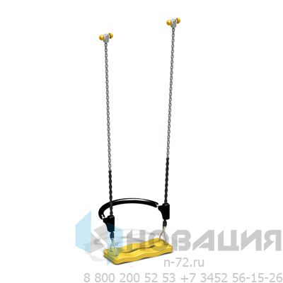 К гибкому подвесу из оцинкованной цепи прикрепляется сиденье. Посадочное место оборудовано спинкой.Материал: металл, резина.