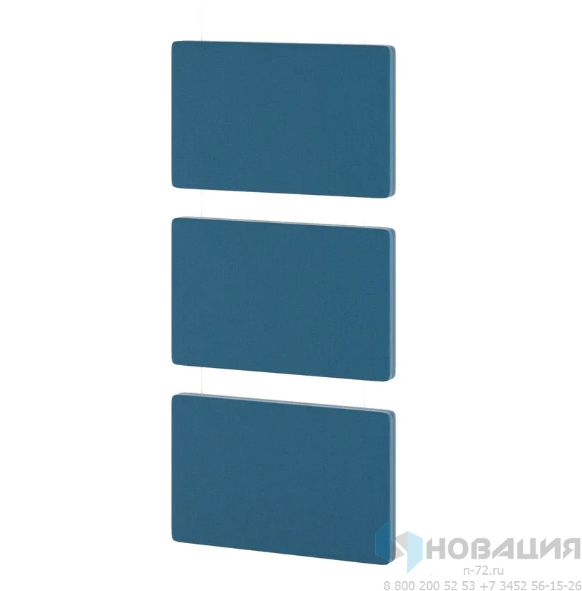 Шумопоглощающая перегородка состоит из 3-х секций, расположенных друг над другом. Элемент зонирования сочетается с мебелью ToForm. Углы каждой секции закруглены.