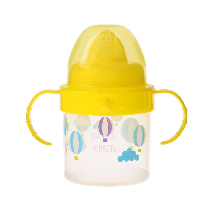 Прозрачный поильник оснащен твердой цветной насадкой (носиком) и 2-мя ручками. Изделие не имеет острых углов, прикрывается дополнительным колпачком.