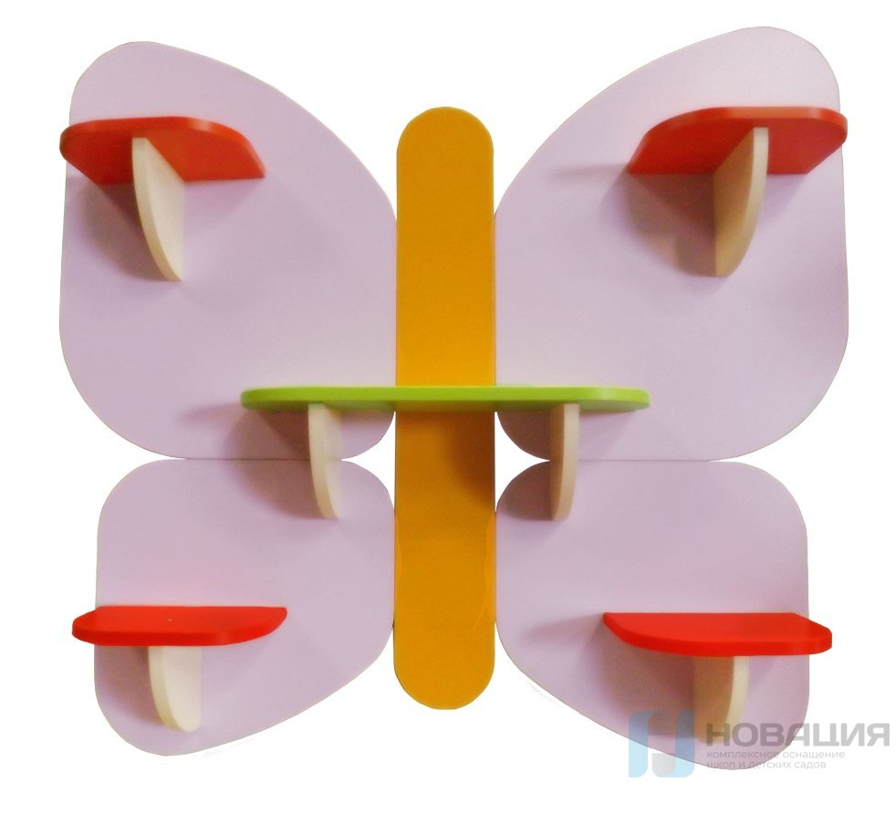 Полка выполнена в виде бабочки. Оснащена пятью нишами для хранения игрушек или книг. Также используется в качестве декоративного элемента.