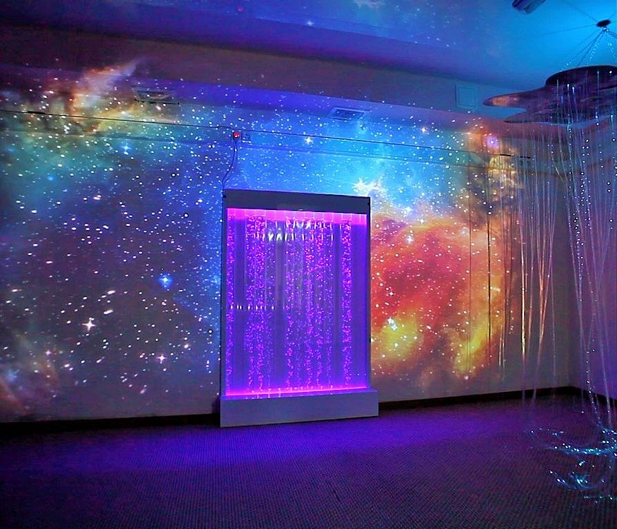 Техника для кабинета психолога, актового зала или сенсорной комнаты позволяет создавать полноразмерную проекцию. Устройства монтируются к стенам, полу, потолку.