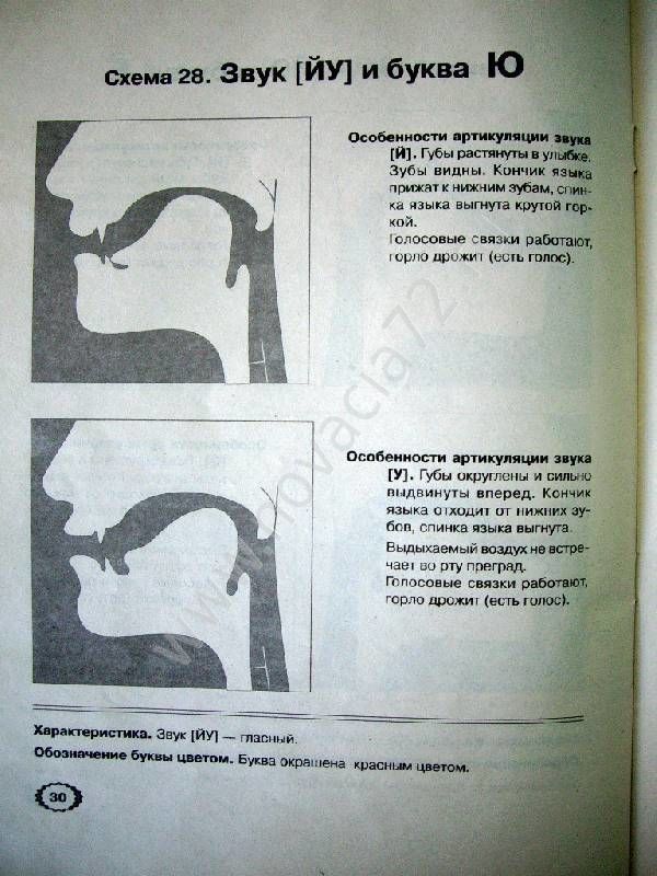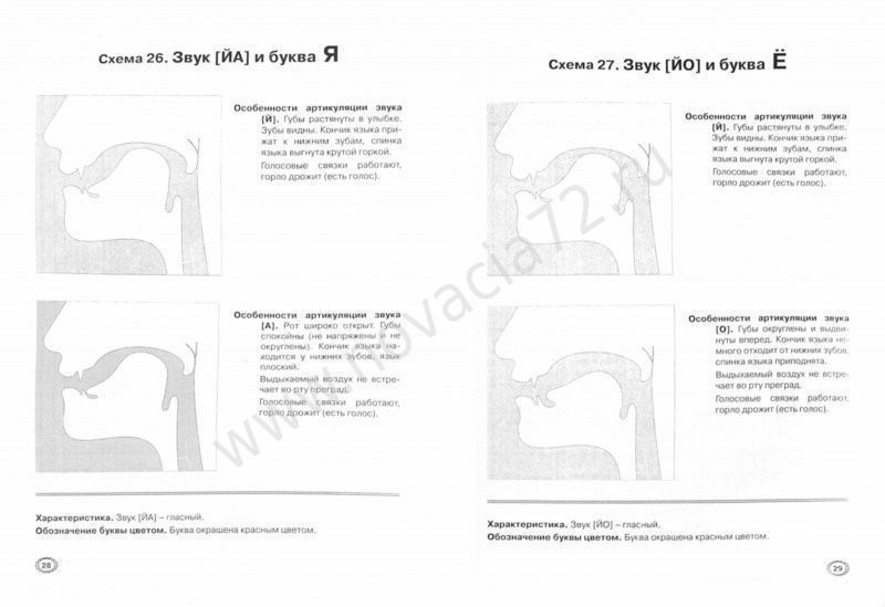 В пособии представлены 46 схем положения артикуляционного аппарата во время произнесения звуков. Последовательность расположения профилей артикуляции дана в соответствии с прохождением звуков и букв по "Логопедической Азбуке".