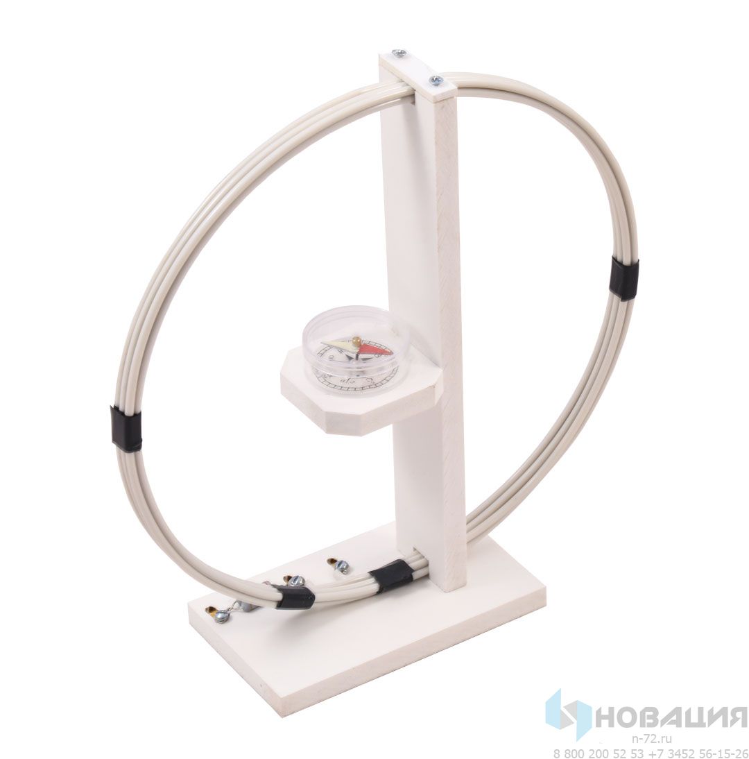 Прибор для урока физики состоит из катушки с проводами (6 витков) на штативе.