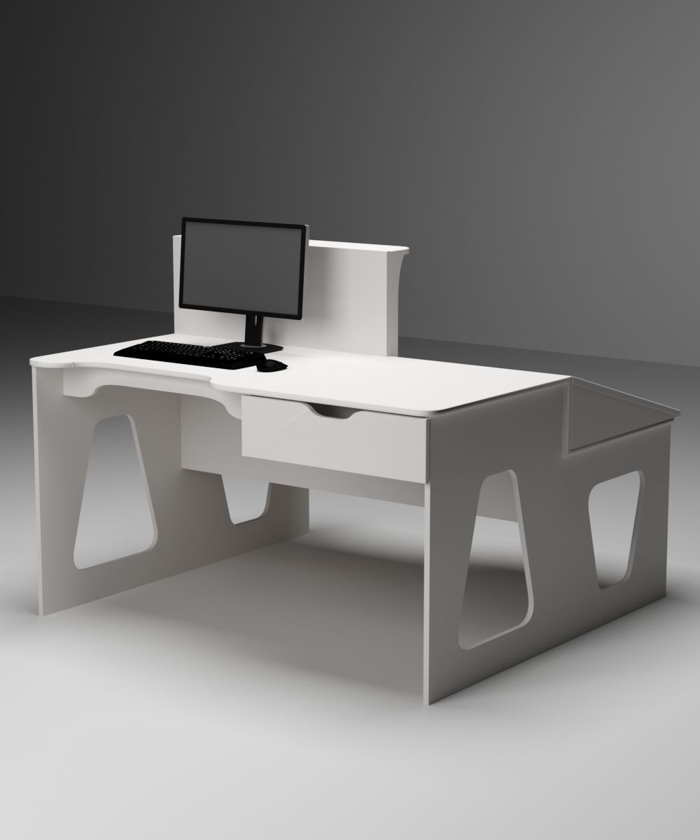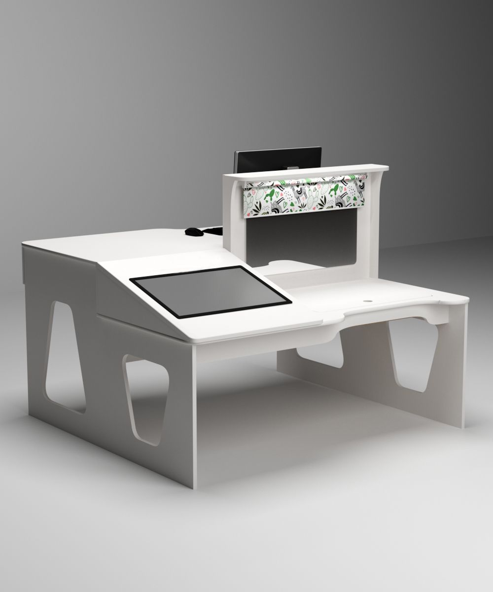 - Рабочий стол двойной. Стол специалиста: 1700х650х750 мм, стол учащегося: 1700х650х550 мм, ЛДСП (16 мм), ПВХ (2 мм), белый.