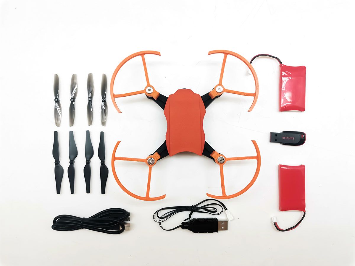 Аккумуляторная батарея перезаряжается. В наборе есть светодиодные индикаторы, датчик расстояния, камера оптического потока, модуль видеокамеры Wi-Fi. Для расширения функционала можно подключить к дрону собственные модули DIY.