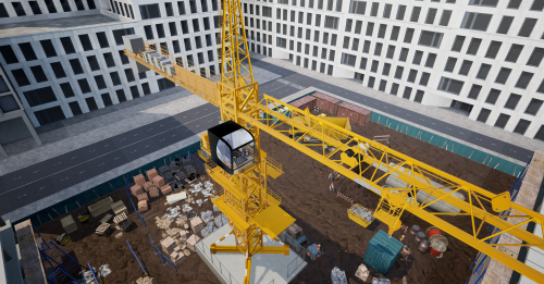 5. Крановщик - симуляция работы оператора башенного крана. Для выполнения задания нужно перенести груз с земли на крышу строящегося здания. Кран управляется при помощи контроллеров.