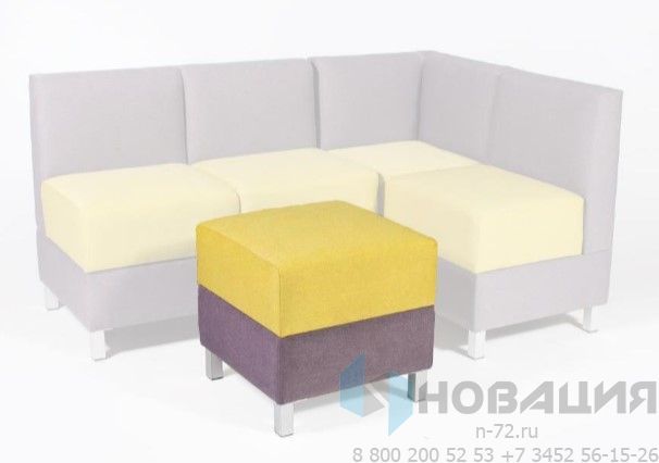 Пуф квадратной формы стоит на 4-х опорах. Может использоваться отдельно или в комбинации с другими модулями. Материал обивки подходит для влажной уборки.