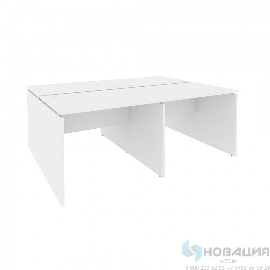 Рабочая станция с 4-мя совмещенными столешницами на П-образном каркасе подходит для групповой работы и совещаний. Пластиковые элементы на опорах с винтами регулируются по высоте. Офисная мебель усиливается царгой. Детали из ЛДСП отделаны кромками толщиной 0,4 мм и 2 мм.